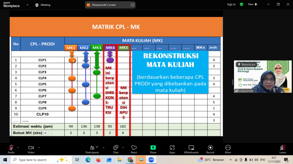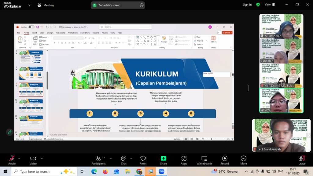Secara umum, pelaksanaan workshop berlangsung sesuai dengan perencanaan dan mekanisme yang telah ditetapkan. Kegiatan ini bertujuan untuk meningkatkan kualitas kurikulum Magister Pendidikan Bahasa Arab melalui penerapan Outcome-Based Education (OBE), sehingga para dosen memiliki pemahaman yang selaras dalam merancang pembelajaran berbasis capaian lulusan serta relevan dengan kebutuhan dunia kerja.