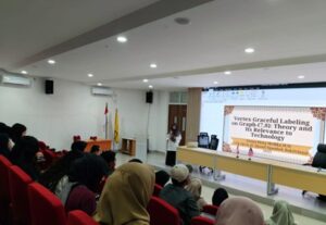 Dalam forum bergengsi ini, dua perwakilan dari Prodi Pendidikan Matematika tampil mempresentasikan hasil riset mereka. Gema Hista Medika, M.Si., dosen sekaligus peneliti dalam bidang teori graf, membawakan makalah berjudul “Vertex Graceful Labeling on Graph-(7,8): Theory and Its Relevance to Technology”. Dalam paparannya, Gema menguraikan konsep pelabelan titik pada graf yang memenuhi syarat graceful, serta bagaimana prinsip tersebut memiliki aplikasi langsung dalam dunia teknologi, khususnya dalam desain jaringan, pengkodean jalur transmisi, dan optimasi aliran data. Graceful labeling memungkinkan sistem teknologi seperti komunikasi nirkabel dan struktur database untuk menghindari konflik identifikasi antar simpul, menjadikannya pendekatan matematis yang relevan dalam merancang teknologi yang efisien dan terstruktur.