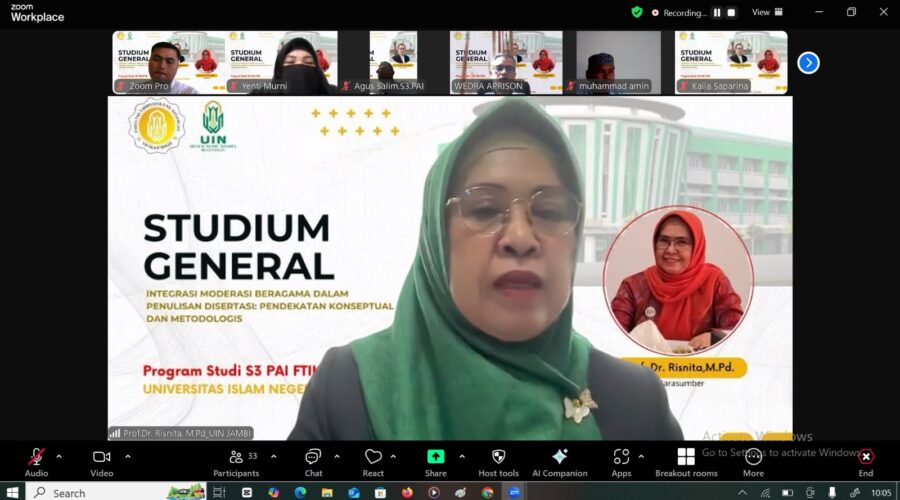 Bukittinggi – Program Studi Doktor (S3) Pendidikan Agama Islam (PAI) Fakultas Tarbiyah dan Ilmu Keguruan (FTIK) UIN Bukittinggi menyelenggarakan Studium General dengan tema “Integrasi Moderasi Beragama dalam Penulisan Disertasi: Pendekatan Konseptual dan Metodologis” pada Senin, 26 Mei 2025. Kegiatan ini dilaksanakan secara daring melalui Zoom Meeting dan diikuti oleh dosen, mahasiswa, serta pengelola program studi. Acara ini menghadirkan narasumber utama, Prof. Dr. Risnita, Guru Besar UIN Sulthan Thaha Saifuddin Jambi,...Read More