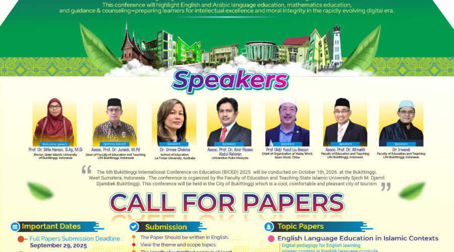 Bukittinggi — Fakultas Tarbiyah dan Ilmu Keguruan Universitas Islam Negeri Sjech M. Djamil Djambek Bukittinggi sukses menggelar Bukittinggi International Conference on Education ke-6 (The 6th BICED) secara hybrid pada 1 Oktober 2025. Konferensi bertema EduTech and Faith: Bridging Values with Global Education ini membahas sinergi teknologi pendidikan dan nilai spiritual dalam menghadapi tantangan pendidikan modern. Dekan FTIK, Dr. Junaidi, M.Pd., menegaskan bahwa tema konferensi ini mengarahkan diskusi pada pentingnya integrasi...