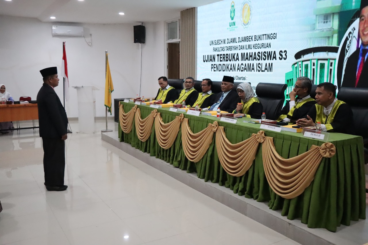 Bukittinggi, 6 Agustus 2025 – Program Studi Doktor (S3) Pendidikan Agama Islam (PAI), Fakultas Tarbiyah dan Ilmu Keguruan UIN Sjech M. Djamil Djambek Bukittinggi kembali melaksanakan Ujian Tertutup Disertasi, sebagai bagian dari tahapan akademik menuju gelar doktor. Kali ini ujian disertasi dilaksanakan atas nama Eliwatis (NIM: 32122013), dengan judul disertasi:“Pengembangan Model Pembelajaran Berbasis Multiple Intelligences...Read More