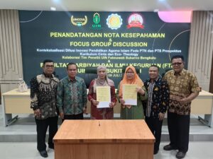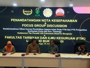 Bukittinggi, 9 Juli 2025 – Kampus UIN Fatmawati Sukarno Bengkulu hari ini menjadi saksi penting bagi terjalinnya berbagai kerjasama akademik antara dua institusi pendidikan tinggi terkemuka. Rangkaian kegiatan dimulai dengan penandatanganan Nota Kesepahaman (MoU) antara Program Pascasarjana UIN Fatmawati Sukarno, yang diwakili oleh Prof. Dr. H. Rohimin, M. Ag., dengan Fakultas Tarbiyah dan Ilmu Keguruan UIN Sjech M. Djamil Bukittinggi, oleh Dr. Junaidi, M. PD. Penandatanganan ini bertujuan untuk mempererat hubungan kerjasama dalam bidang pendidikan, penelitian, dan pengembangan sumber daya manusia antar kedua universitas.