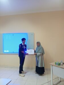 Kegiatan penyambutan ditutup dengan penyerahan sertifikat dan hadiah kepada Fadil Hasbi (angkatan 2024) sebagai juara 1 lomba Geogebra Challenge Grafik Nama. Setelah itu, seluruh peserta mengikuti sesi foto bersama sebagai penanda kebersamaan dan awal perjalanan mahasiswa baru di Prodi Matematika.